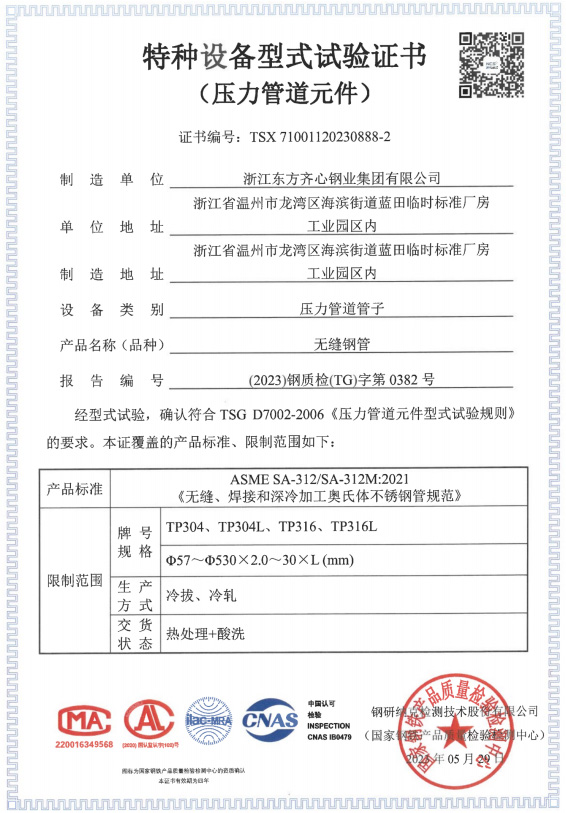 浙江東方齊心以不銹鋼系列產(chǎn)品為主導(dǎo),品種有不銹鋼管、奧氏體不銹鋼管、高溫合金鋼管、雙相不銹鋼管、鎳基合金管、冷凝器用管、U形管、核電管、不銹鋼管件、法蘭、閥門等。規(guī)格有6-2020x0.8-60mm,Ф16-25長(zhǎng)度可達(dá)33m。公司擁有精密制造鋼管的各類機(jī)械設(shè)備25臺(tái)(套),其中各類冷軋管機(jī)15臺(tái), 冷拔機(jī)10臺(tái),天然氣熱處理爐2套。